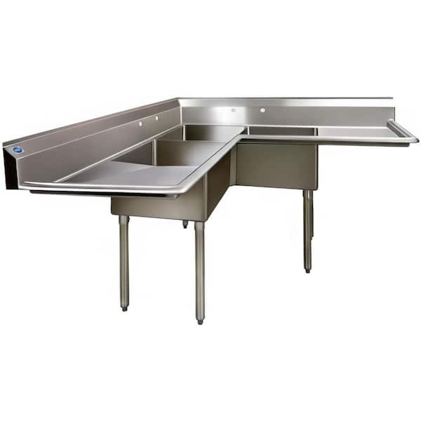 57 in. Freestanding Stainless Steel Commercial NSF 3 Compartments Sink EC3T1818LRC with Drainboard 18-Gauge