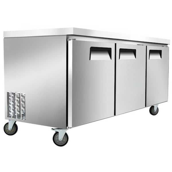 72.5 in. W 20.27 cu. ft. Commercial NSF Undercounter 3 Solid Doors Refrigerator EU72R in Stainless Steel