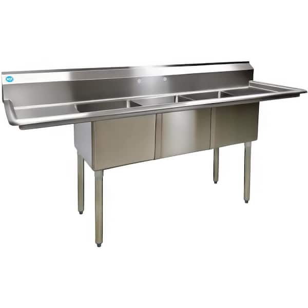 75 in. Freestanding Stainless Steel Commercial NSF 3 Compartments Sink EC3T1515LR with Drainboard 18-Gauge