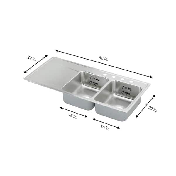 Lustertone Classic 48 in. Drop-in Double Bowl 18-Gauge Stainless Steel Kitchen Sink Only