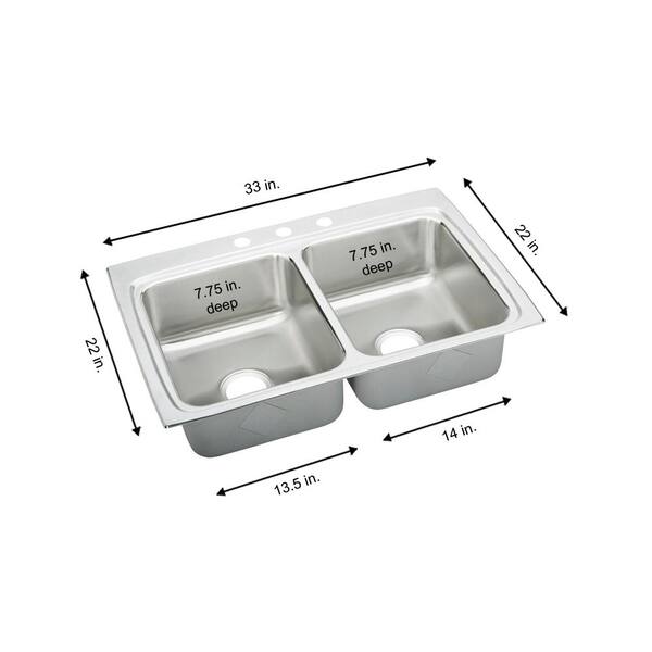 Lustertone Drop-In Stainless Steel 33 in. 3-Hole Double Basin Kitchen Sink