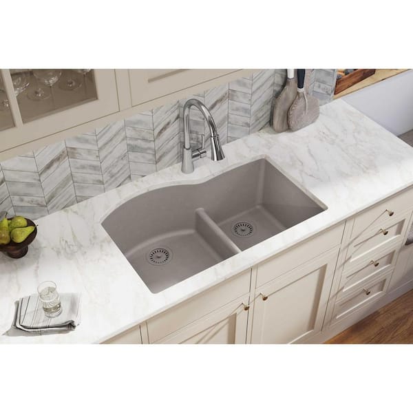 Quartz Classic 33 in. Undermount Double Bowl Greige Granite/Quartz Composite Kitchen Sink w/ Accessories