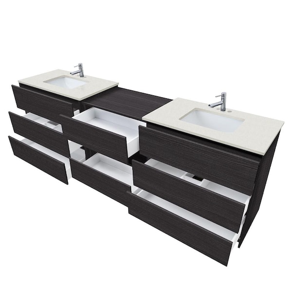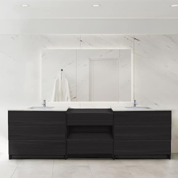 Element 102 in. W x 22 in. D x 35 in. H Double Sink Bath Vanity in Dark Ebony with Galaxy White Quartz Top
