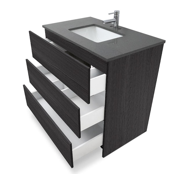 Element 36 in. W x x 22 in. D x 35 in. H Single Sink Bath Vanity in Dark Ebony with Galaxy Grey Quartz Top