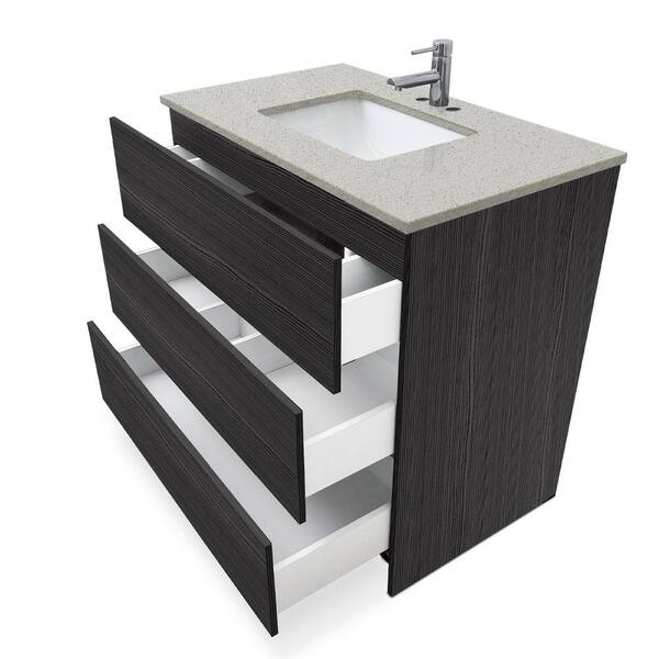 Element 36 in. x W x 22 in. D x 35 in. H Bath Vanity in Ebony with Galaxy White Quartz Top