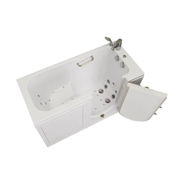 Lounger 60 in. Acrylic Walk-In Whirlpool and Air Bath Bathtub in White, Fast Fill Faucet Set, RHS 2 in. Dual Drain