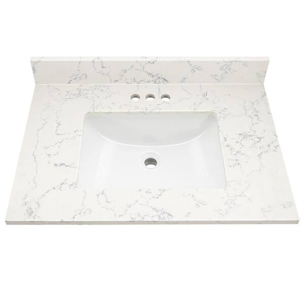 Nevado 25 in. W x 19 in. D x 36 in. H Bathroom Vanity in Gray with Quartz Stone Vanity Top Sink in Lyra White