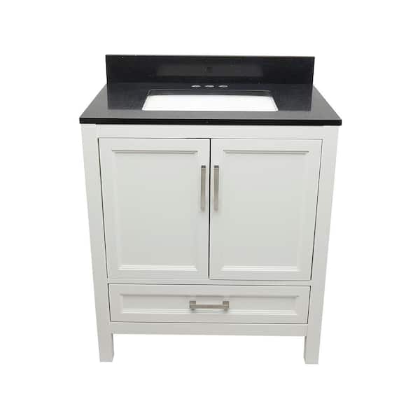 Nevado 31 in. W x 22 in. D x 36 in. H Bath Vanity in White with Quartz Stone Galaxy Black Top with White Basin