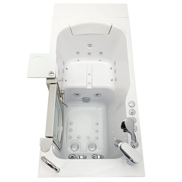 Petite 52 in. x 28 in. Walk-In Whirlpool and Air Bath Bathtub in White, Heated Seat, Fast Fill Faucet, RHS Dual Drain