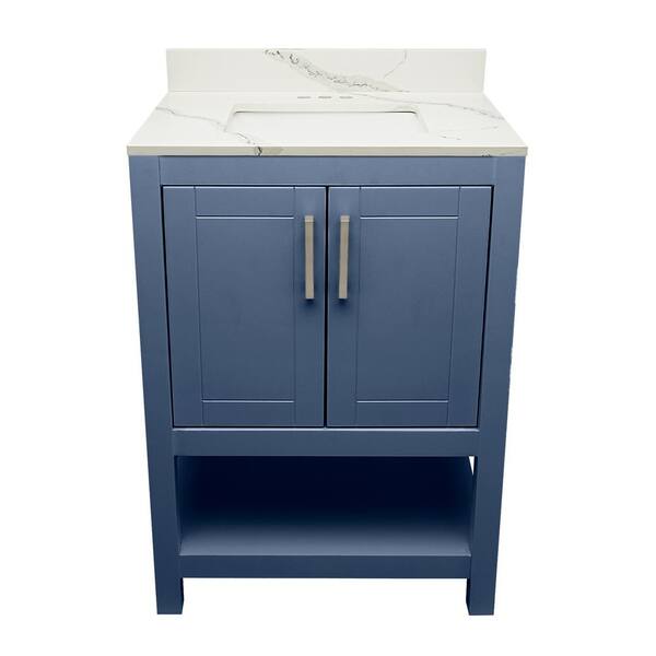Taos 25 in. W x 19. in D. x 36 in. H Bath Vanity in Navy Blue with Quartz Stone Calacatta White Top with White Basin