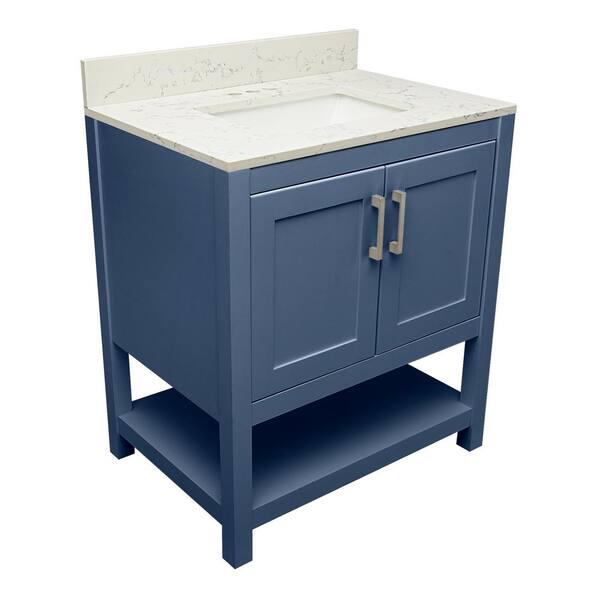 Taos 31 in. W x 22 in. D x 36 in. H Bath Vanity in Navy Blue with Lyra White Quartz Stone Top with White Basin