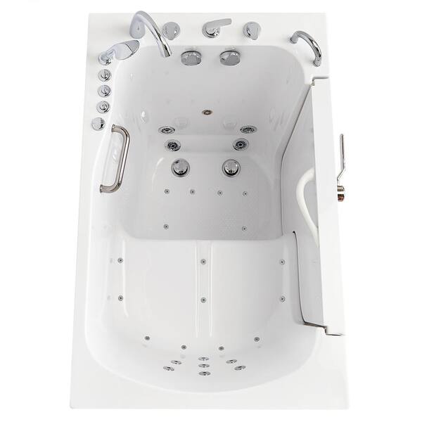 TransferXXXL 55 in. x 36 in. Walk-In Whirlpool and Air Bath Bathtub in White, Heated Seat,Fast Fill Faucet,RH Dual Drain