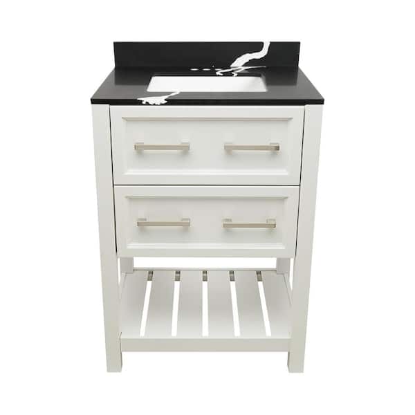 Tremblant 25 in. W x 19 in. D x 36 in. H Bath Vanity in White with Quartz Stone Calacatta Black Top with White Basin