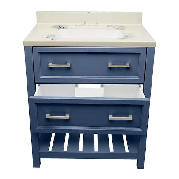 Tremblant 31 in. W x 22 in. D x 36 in. H Bath Vanity in Navy Blue with Carrara Cultured Marble Top