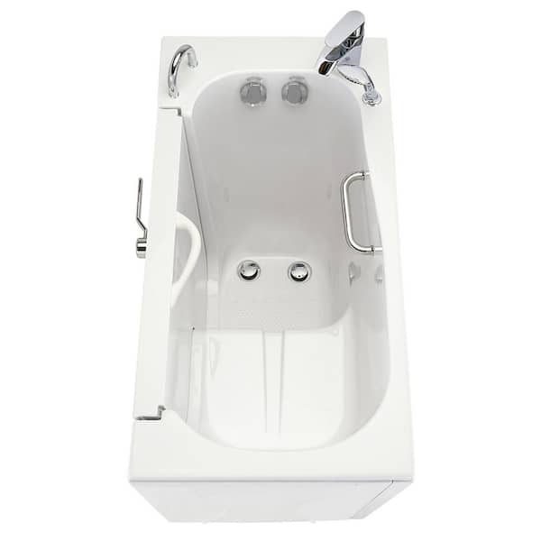 Wheelchair Transfer 26 52 in. Acrylic Soaking Walk-In Bathtub in White with Fast Fill Faucet and Left 2 in. Dual Drain