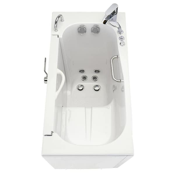 Wheelchair Transfer 26 52 in. Acrylic Walk-In Whirlpool Bathtub in White with Fast Fill Faucet, Left 2 in. Dual Drain
