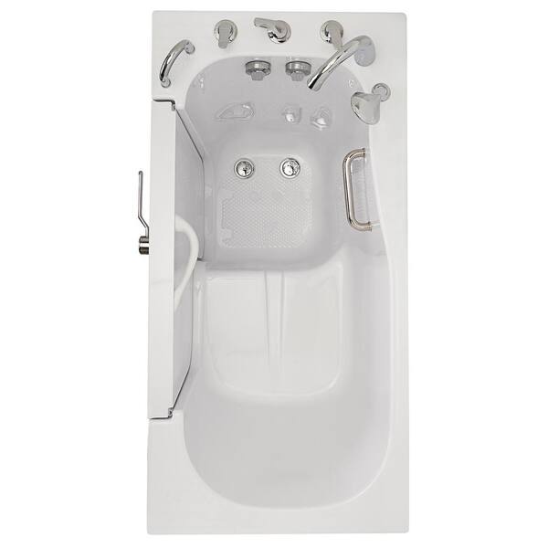 Wheelchair Transfer 60 in. Acrylic Walk in Soaking Tub in White with Fast Fill Faucet Set and Left 2 in. Dual Drain