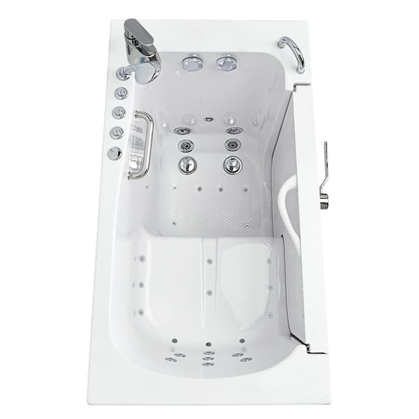 Wheelchair Transfer30 52 in. Acrylic Walk-In Whirlpool and Air Bath Bathtub in White, Fast Fill Faucet, Right Dual Drain