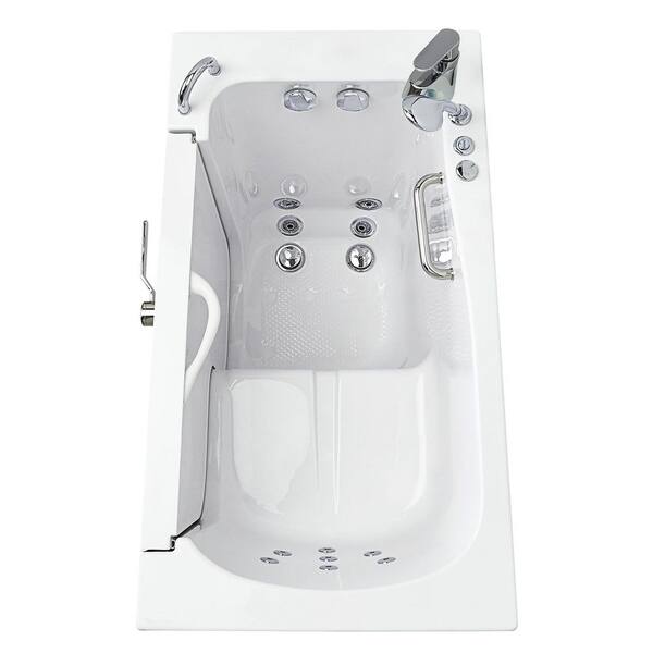Wheelchair Transfer32 52 in. Acrylic Walk-In Whirlpool Bathtub in White with Fast Fill Faucet, Left 2 in. Dual Drain