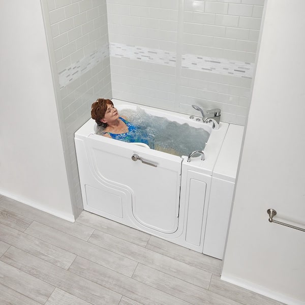 Wheelchair Transfer32 52 in. Acrylic Walk-In Whirlpool Bathtub in White with Fast Fill Faucet, Right 2 in. Dual Drain