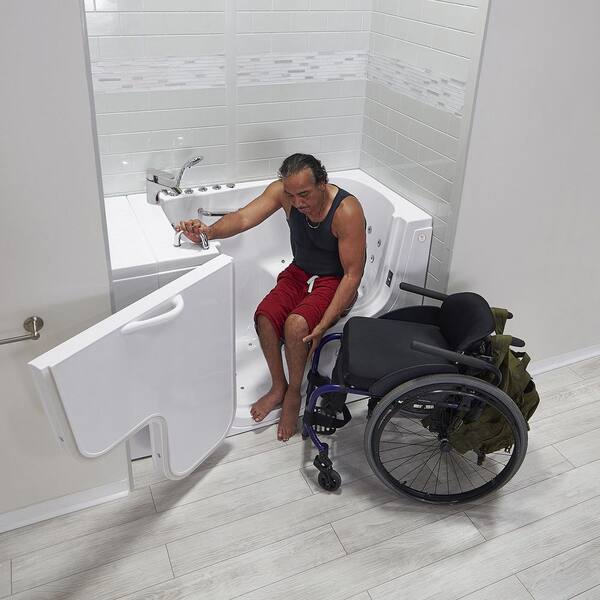 Wheelchair Transfer32 52 in. Walk-In Whirlpool and Air Bath Bathtub in White, Fast Fill Faucet,Heated Seat,LH Dual Drain