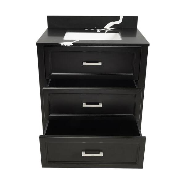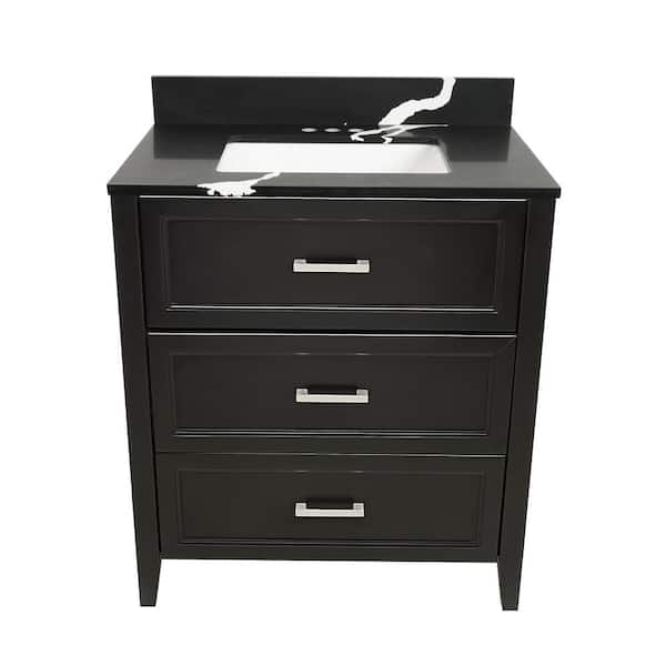 Zermatt 31 in. W x 22 in. D x 36 in. H Bath Vanity in Espresso with Quartz Stone Calacatta Black Top with White Basin