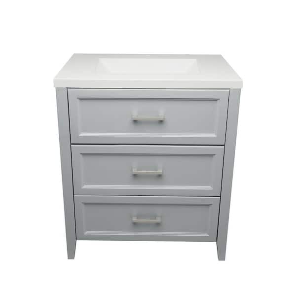 Zermatt 31 in. W x 22 in. D x 36 in. H Bath Vanity in Gray with White Cultured Marble Top Single Hole