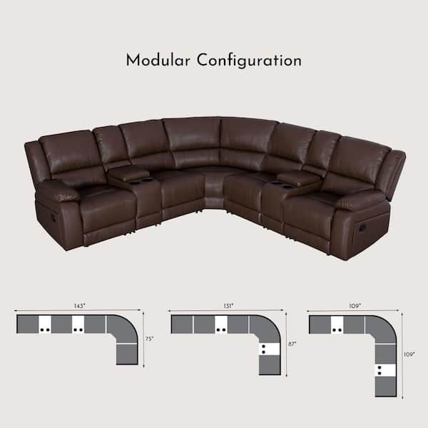 109 in. 7 Pieces Modular Modern Contemporary Faux Leather Manual Recliner Sectional Sofa in. Brown