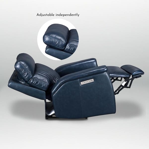 38 in. Genuine Leather Triple Power Recliner in DarkBlue with USB and USB-C Ports, Power Headrest and Lumbar