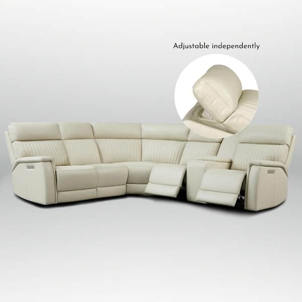 Cole 105 in. L-Shaped Leather Power Recliner Sectional Sofa with Ajustable Headrest, 1 Power Armlesschair in. Cream