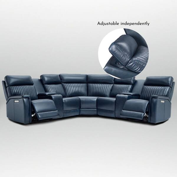 Cole 117 in. Genuine Leather Power Recliner Sectional Sofa with Zero Gravity, USB&USB-C Ports, 2 Consoles in. DarkBlue