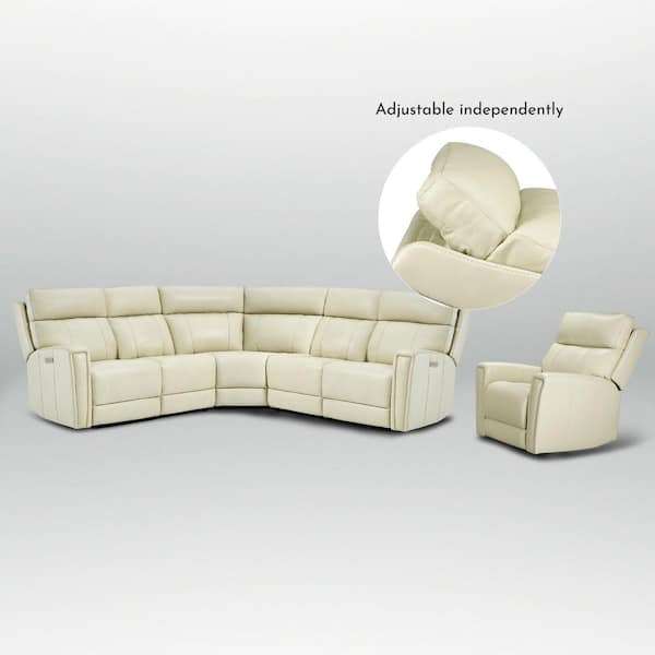 Hank 104 in. 6-pieces Genuine Leather Dual Power Sectional and Recliner Living Room Set with Zero Gravity in Cream