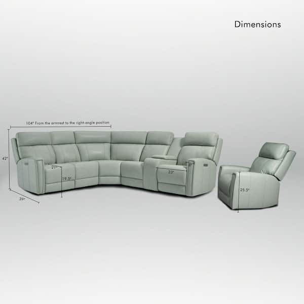 Nora 104 in. 6 Seaters Genuine Leather Dual Power Sectional Sofa Set with Console, 1 Power Armless Chair in Sea Foam