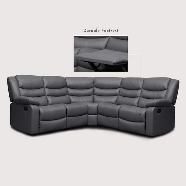 Rex 106'' in 5-Seat L-Shaped Modular Faux Leather Sectional Sofa with Manual Recliners, Living Room in. Gray
