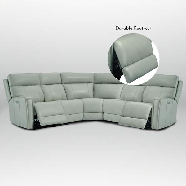 Rhett 104 in. Genuine Leather Power Reclining Sectional Sofa With Zero Gravity, 2 Stationary Armlesschairs in. SeaFoam