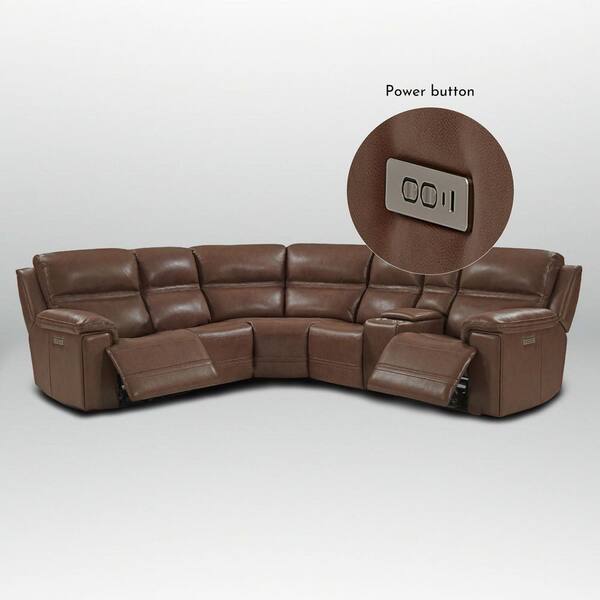 Van 108 in 5-Seaters Genuine Leather Dual Power Sectional Sofa with Console, USB Ports in. LightBrown