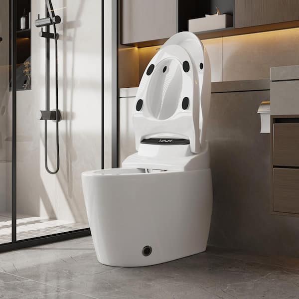 Elongated Smart Bidet Toilet 1.28GPF with Foot Sensing Auto Open/Flush, Private Cleaning, Digital Display, Heated, White