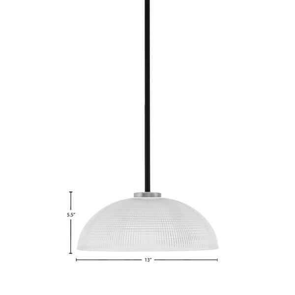 Elonia 100-Watt 1 Light Matte Black & Graphite Stem Mini Pendant Light with 13 in. Clear Ribbed Glass Shade