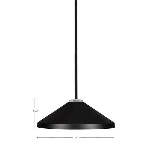 Elonia 100-Watt 1 Light Matte Black & Graphite Stem Mini Pendant Light with 14 in. Matte Black Cone Metal Shade