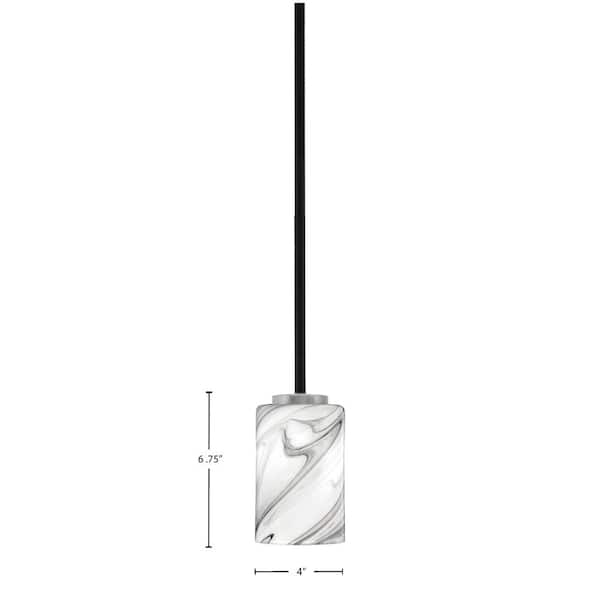 Elonia 100-Watt 1 Light Matte Black & Graphite Stem Mini Pendant Light with 4 in. Onyx Swirl Glass Shade