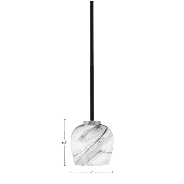 Elonia 100-Watt 1 Light Matte Black & Graphite Stem Mini Pendant Light with 6 in. Onyx Swirl Glass Shade