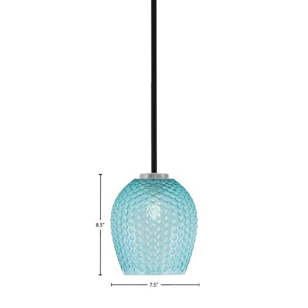 Elonia 100-Watt 1 Light Matte Black & Graphite Stem Mini Pendant Light with 7.5 in. Turquoise Textured Glass Shade