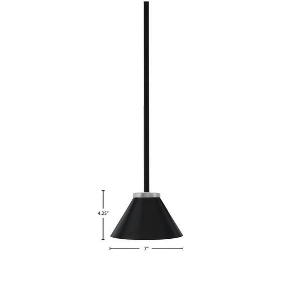 Elonia 100-Watt 1 Light Matte Black & Graphite Stem Mini Pendant Light with 7 in. Matte Black Cone Metal Shade