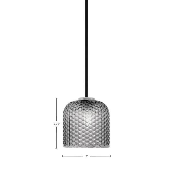 Elonia 100-Watt 1 Light Matte Black & Graphite Stem Mini Pendant Light with 7 in. Smoke Textured Glass Shade
