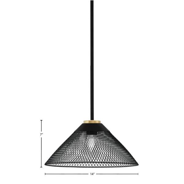 Elonia 100-Watt 1 Light Matte Black & New Aged Brass Stem Mini Pendant Light with 14" Matte Black Cone Mesh Metal Shade