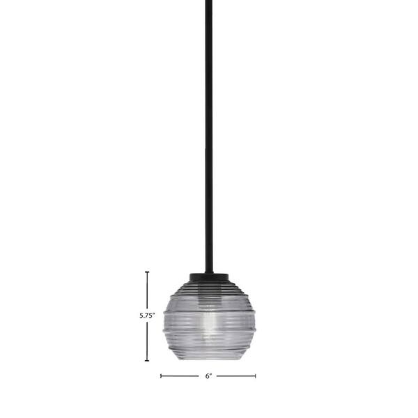 Elonia 100-Watt 1 Light Matte Black Stem Mini Pendant Light with 14 in. Matte Black Cone Mesh Metal Shade Shade