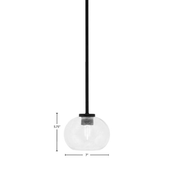 Elonia 100-Watt 1 Light Matte Black Stem Mini Pendant Light with 5.75 in. Clear Bubble Glass Shade