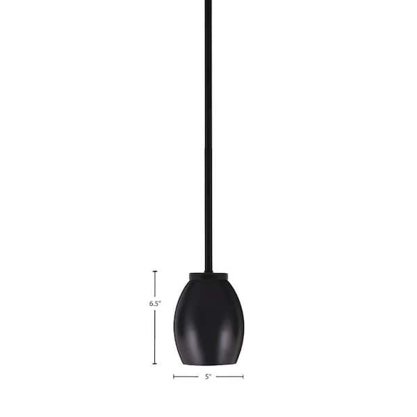 Elonia 100-Watt 1 Light Matte Black Stem Mini Pendant Light with 5 in. Matte Black Oval Metal Shade