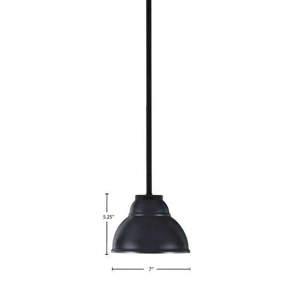 Elonia 100-Watt 1 Light Matte Black Stem Mini Pendant Light with 7 in. Matte Black Double Bubble Metal Shade