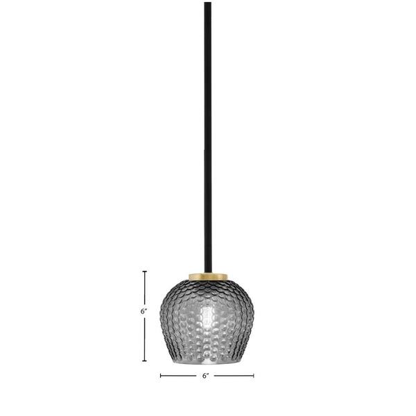 Elonia 100-Watt 1-Light Matte Black and Brass Stem Mini Pendant Light with 6 in. Smoke Textured Glass Shade